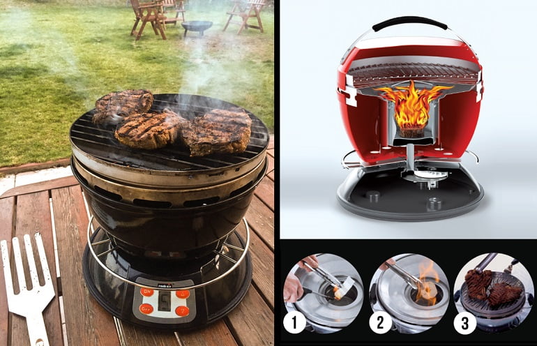It is innovative and probably the most powerful and time consuming grill on the market. You simply add some wood chunks or lump charcoal and get ready to cook. In less than 5 minutes the temperature will reach roughly 400°C thanks to its blower system which pushes heat to the cooking surface creating a turbo effect. The Cook-Air delivers great flavours and impeccable results in no time.