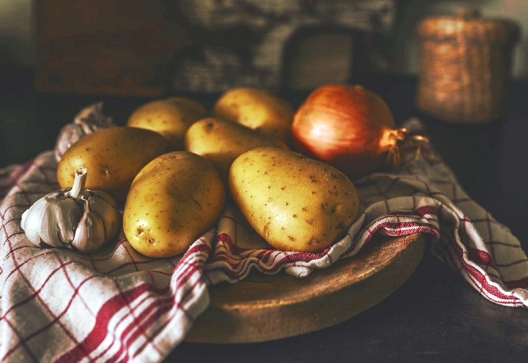 Dice the meat, and slice the onion and the garlic. Gently heat a little olive oil in a tagine and fry the meat, onions and garlic, stirring gently until everything is well cooked. Next, add the chopped tomatoes, lemon juice, olives, confit lemons, saffron and ginger, and simmer for about 2½-3 hours. Add the prunes and the dried apricots 30 minutes before the end of the specified cooking time. Boil 4 potatoes and add to the tagine few minutes before serving. Add the crushed almonds for that extra crunchy taste.
