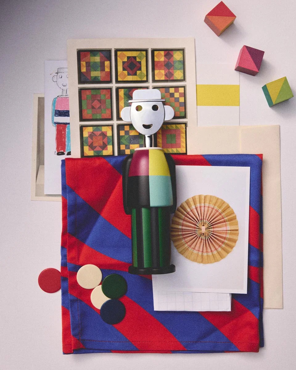The Alessandro M. corkscrew’s new decoration, designed by Arthur Arbesser, showcases a distinctive style that blends artistic and architectural influences from Vienna with a modern, contemporary touch. This captivating makeover seamlessly combines the world of design with the original expressiveness of a talented figure in contemporary fashion. Made from AlkiPaper®, an eco-friendly bio-composite based on paper and natural materials, Alessandro M. is an elegant and functional item, perfect for adding style to your table setting.