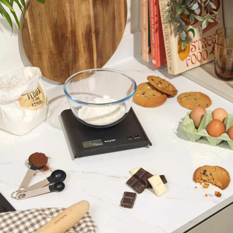 Make food preparation fun and an easy process thanks to this Arc kitchen scale. With a weight limit of up to 3 kg, save time on washing up by measuring multiple ingredients in the same bowl with the ‘Add & Weigh’ feature. This easy to clean scale is suitable to use with any type of bowl or container and can even be used to measure ingredients directly on to the platform for more precise weighing. The LCD display makes it easy to view measurements and switch between pounds or ounces, depending on the recipe. With an elegant design, this digital scale is compact for quick and easy storage, saving you precious countertop and cupboard space!