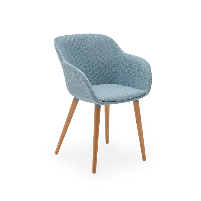 The warmth of the wood and the softness of the fabric in one! In this model, the Shell armchair meets wooden legs and high quality fabric, which can be used with pleasure in a small café or high-class restaurants. With the combined wood and fabric the armchairs feature a sporty attitude, yet its rich fabric makes it suitable for any project. Armchairs are easily cleaned.