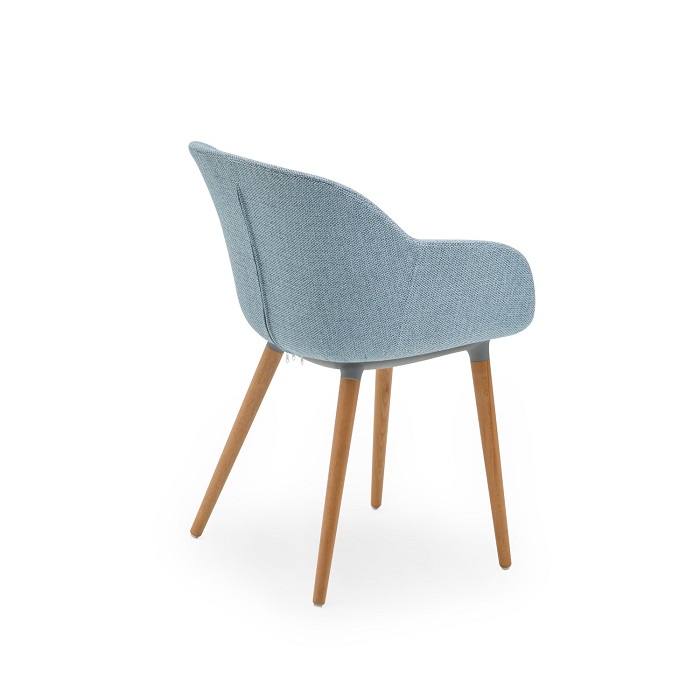 Armchair Shell-N Pad Wooden Leg Light Blue Fabric