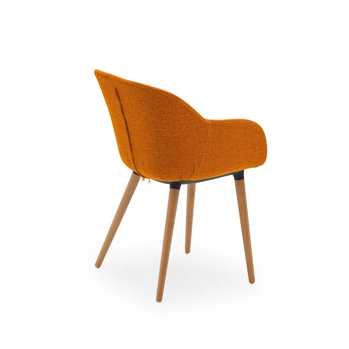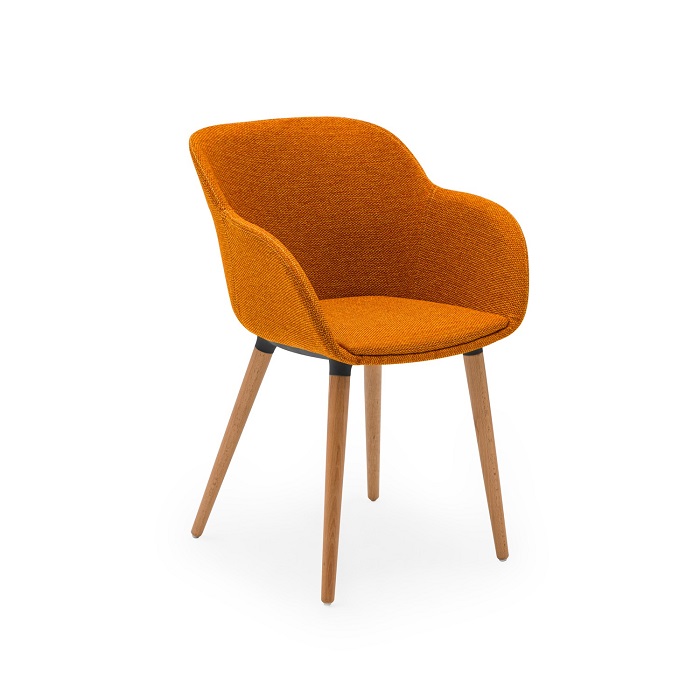 The warmth of the wood and the softness of the fabric in one! In this model, the Shell armchair meets wooden legs and high quality fabric, which can be used with pleasure in a small café or high-class restaurants. With the combined wood and fabric the armchairs feature a sporty attitude, yet its rich fabric makes it suitable for any project. Armchairs are easily cleaned.