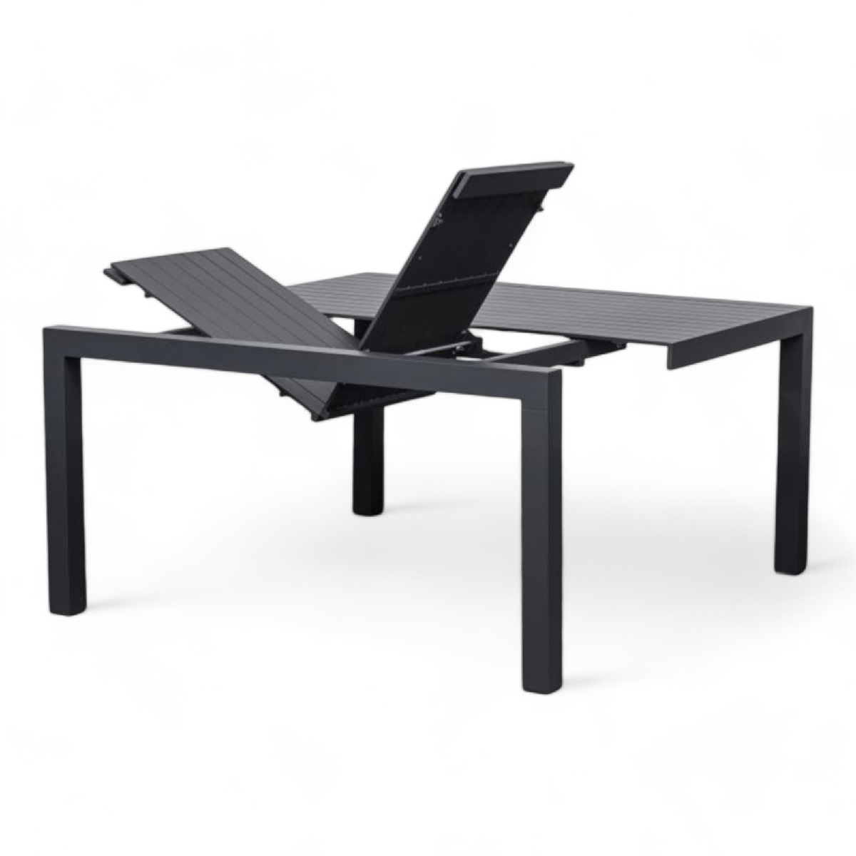 The Azura Extendable Dining Table is timelessly elegant featuring a slatted table top and hidden away extension mechanism. The seamless extension mechanism allows you to effortlessly adjust the depth of the table. The soft rounded edge on the legs adds a stylish touch, the legs are placed at the corners for maximum leg room and all legs feature adjustable feet for uneven surfaces. The table can seat comfortably 6 people when closed and 8 people when opened. Made with strong aluminium for durability even when used outdoors as it is weather resistant with minimal maintenance.