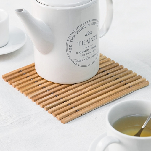 A practical & flexible bamboo trivet that will protect your table from heated pots and plates. You can easily roll or fold it thanks to its flexible design.