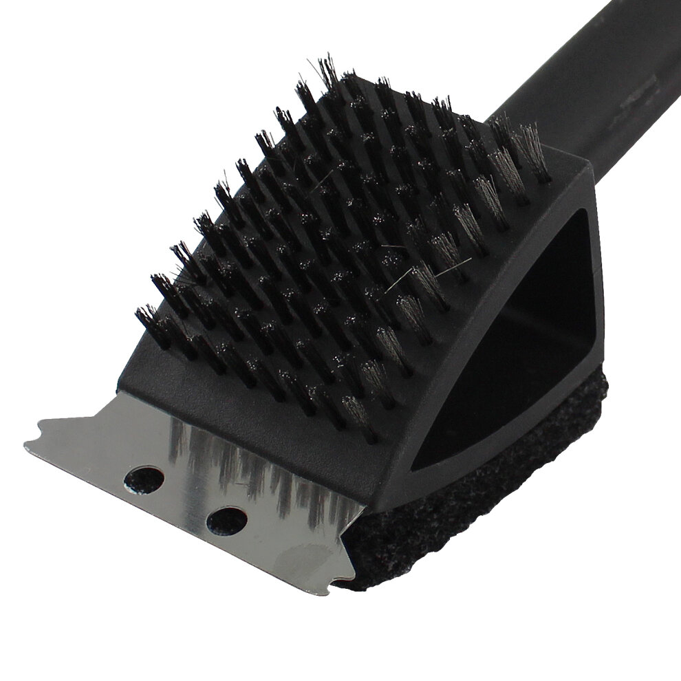 This handy BBQ cleaning tool will ensure your barbecue is left in pristine condition after every use. The cleaning tool will tackle those tough burnt grease stains and, the steel scraper will allow you to thoroughly clean each bar of the BBQ grill. Perfect for cleaning whilst the BBQ is warm, as the long handle will prevent burning and the benefit of this is that the grease and grime will be easier to remove. The scraper removes tough, baked-on residue, the bristles clean and scrub the grates, and the scouring pad removes any remaining debris for a spotless finish.