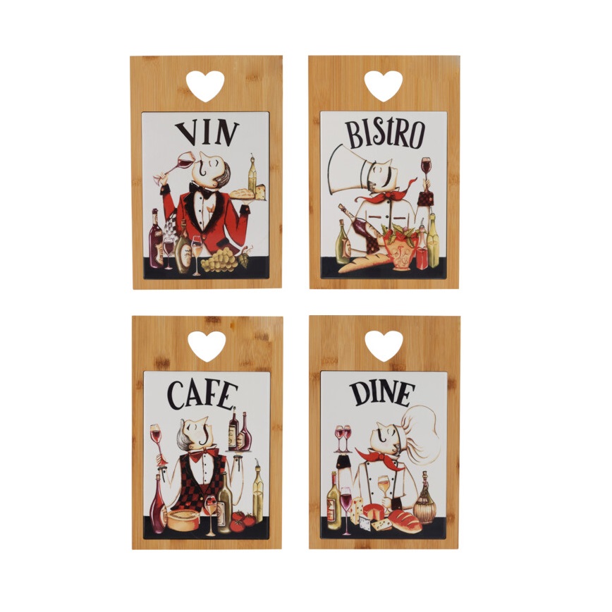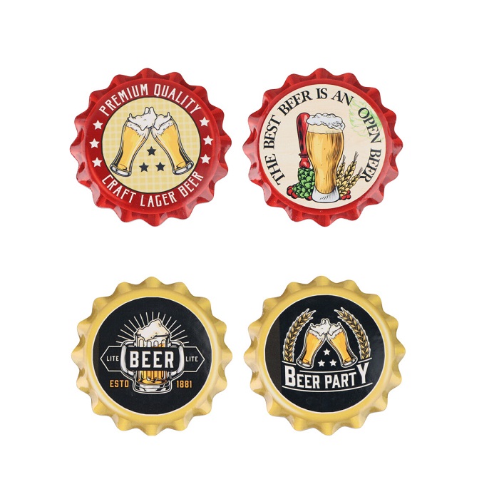 The set contains four coasters in different designs, neatly stored in a handy metal holder. Perfect for when you have your pals over or hosting a party. The coasters not only protect your table from stains and rings, but also add a colourful touch to your table.