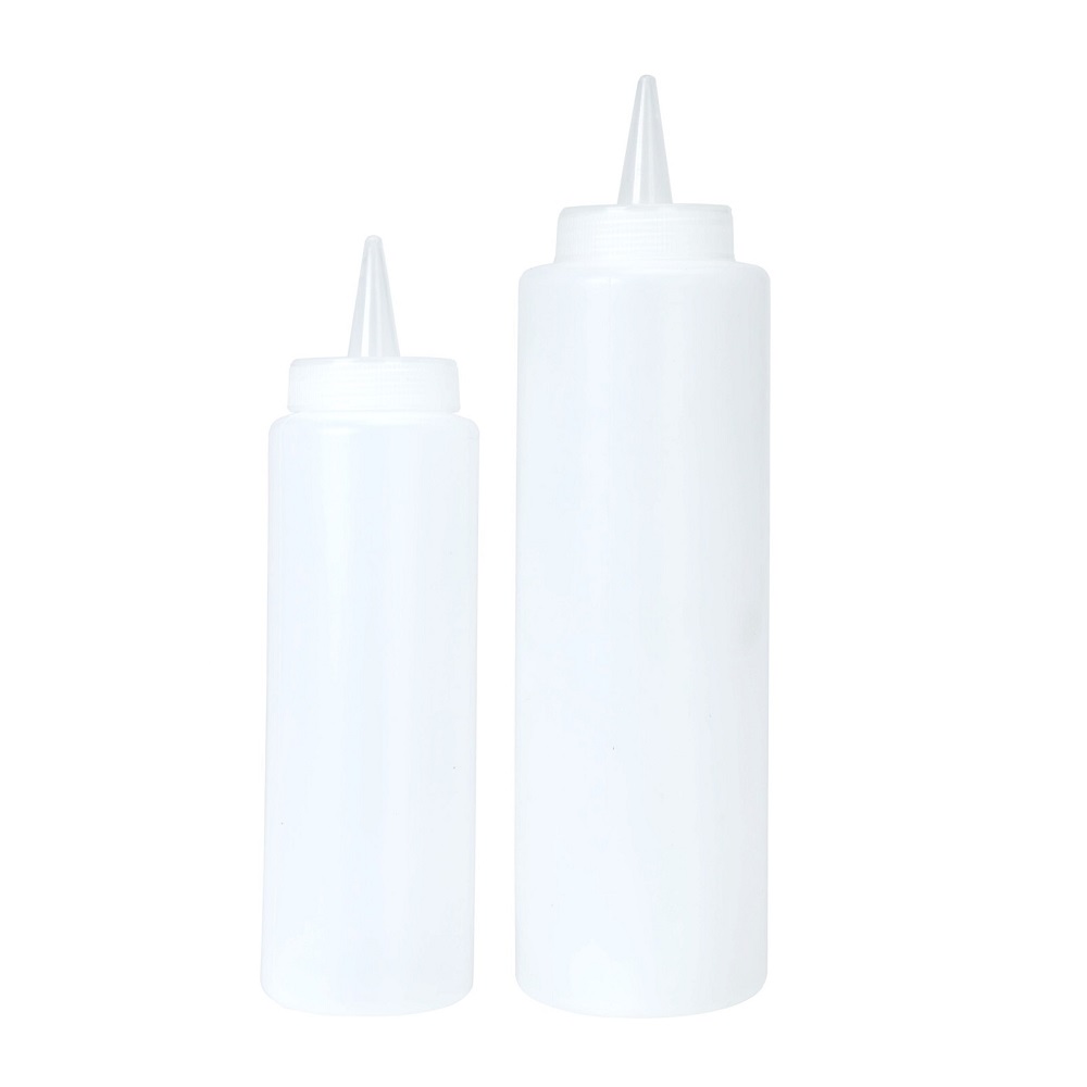 A set of two bottles for dispensing sauces. The bottles feature caps preventing the sauce from leaking and to retain its freshness longer. The soft bottles make squeezing easier. The products are dishwasher safe.