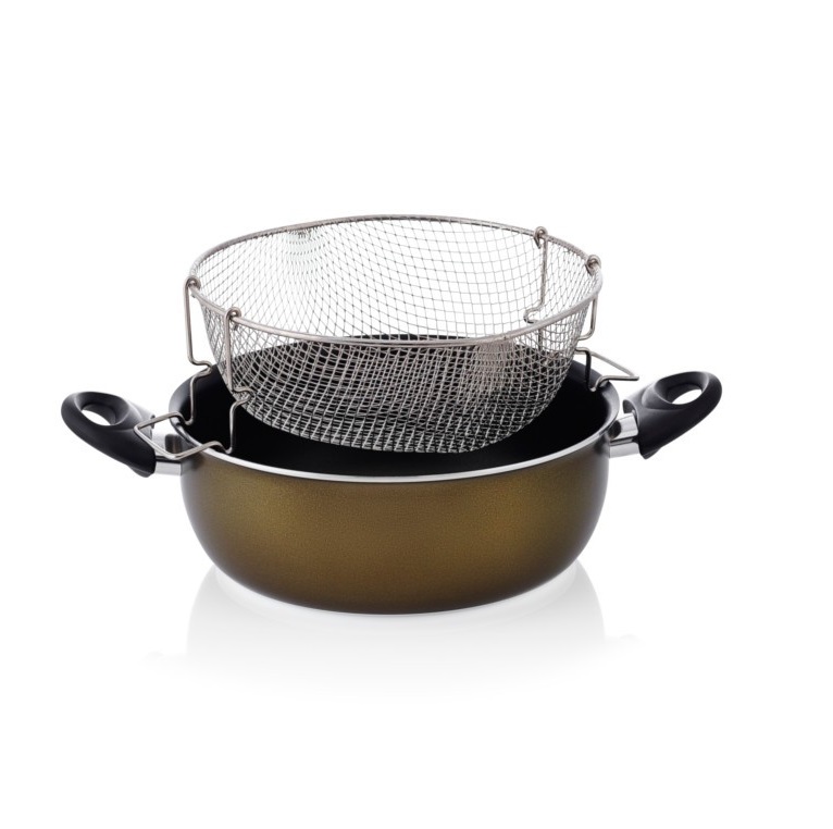 A versatile casserole deep fryer which can be used in various ways around your kitchen. You can boil, braise, stir fry and thanks to the detachable basket it can also be used as a deep fryer. It is economical and cooks food quickly as it features an induction base. The casserole deep fryer, has a double layer non-stick inner lining for exceptional strength and long-term durability and a double layer non-stick exterior coating for easy cleaning. It also features ergonomic bakelite handles and can be used on all type of handles.