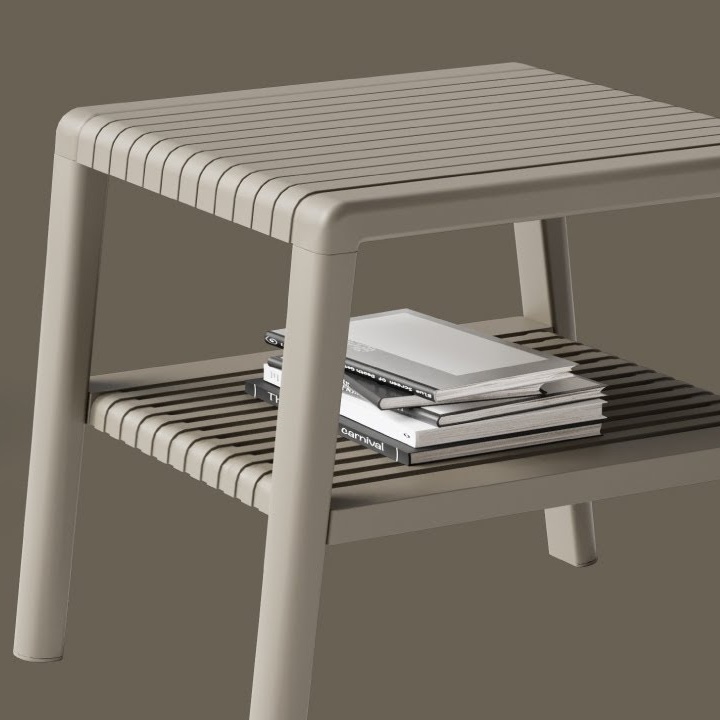 Lovely side table or lounge table, ideal for patios or poolside. It is made of recycled polypropylene reinforced with fiberglass with a UV filter, resistant to excess sun, humidity and salt, ideal for outdoor use.