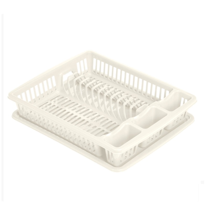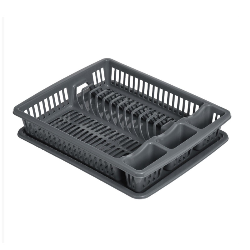 Maintain order on your kitchen counter with this dish drying tray. Crafted from durable plastic, complete with a drip tray and drainage holes provides ample room for arranging plates, bowls, mugs, tumblers, utensils, and cutlery.