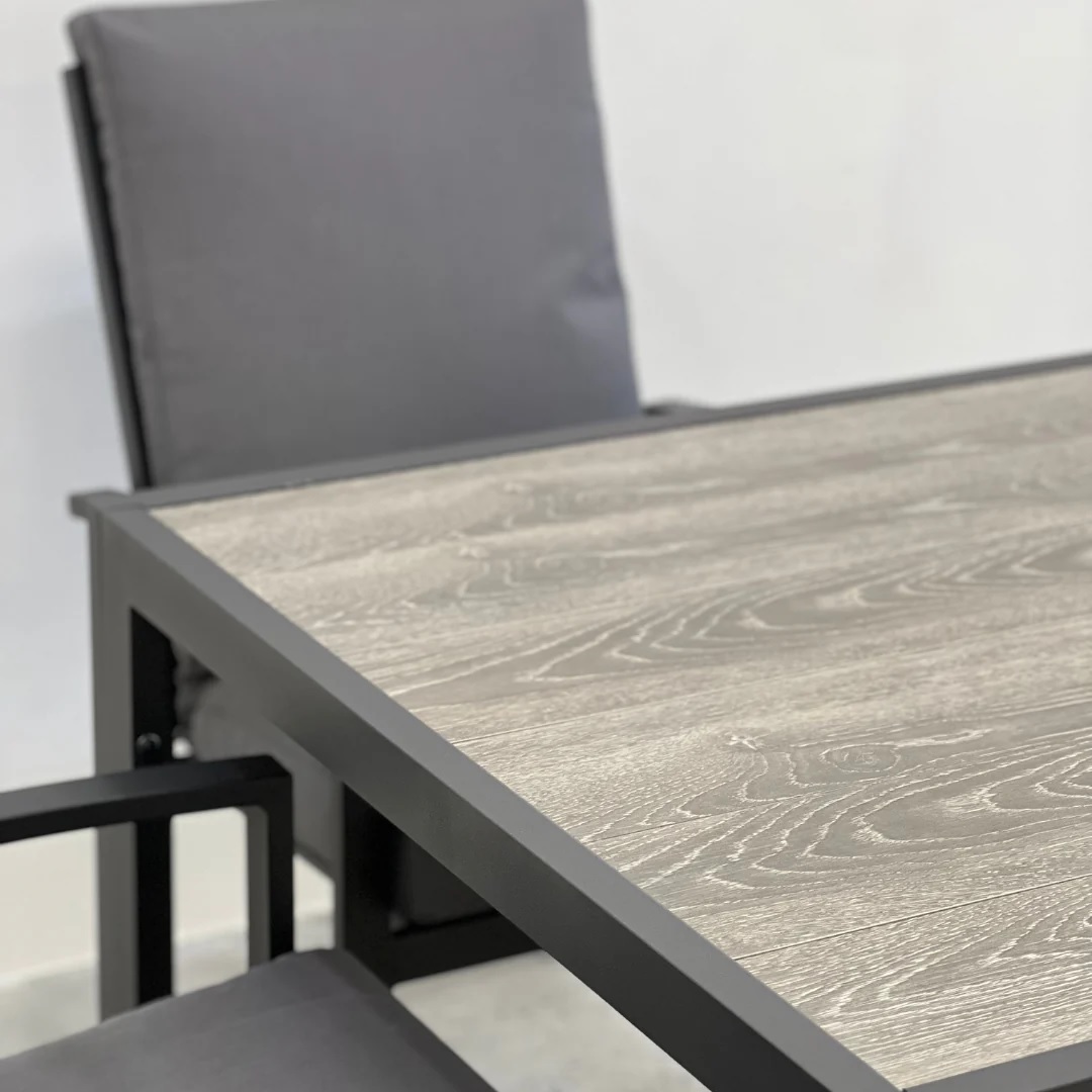 Material: Powder Coated Aluminium Frame, Wood-look Tile Top