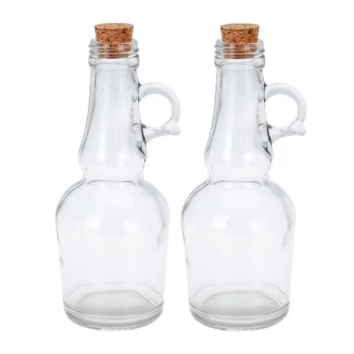 Create an Italian inspired atmosphere with these vintage looking oil & vinegar bottles. The practical design includes a narrow neck and wide belly base, complemented by a convenient handle for a secure grip and smooth pouring. Each bottle ensures freshness with its cork stopper lid, preventing oxidation and dust contamination. Thanks to the high quality glass it makes it easier to view the contents of the bottle. Displayed on the kitchen counter or party table, it will surely fit any aesthetic