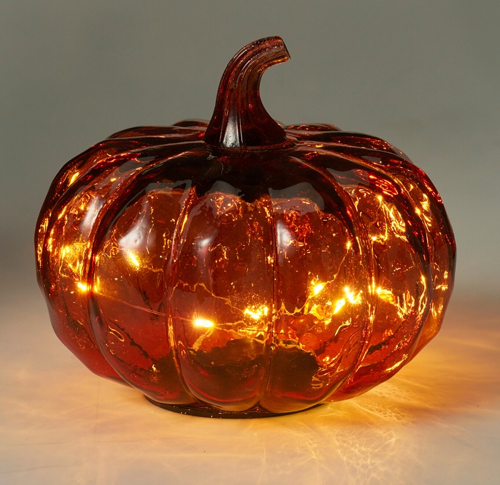 Bring a warm autumn atmosphere to your home with this gorgeous pumpkin lamp. Thanks to its light, the lamp will create a pleasant and relaxing atmosphere. Perfect for Halloween, this glass pumpkin with lights creates a spooky feel. The lights come with an automatic timer.