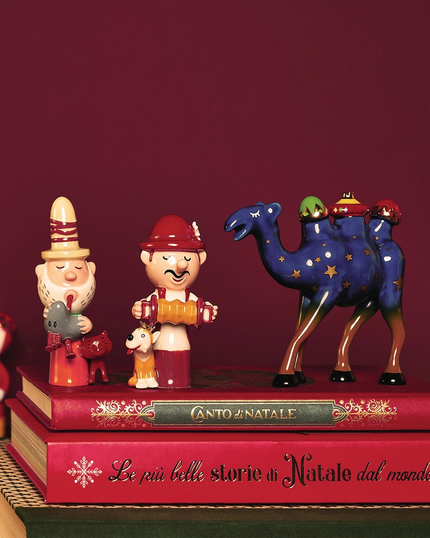 The curious Trino camel, with three humps following the Magi with their gifts, is one of the characters that enriched the Happy Eternity Baby nativity, designed for those who love the special atmosphere of Christmas and appreciate innovation in tradition. Massimo Giacon and Marcello Jori merge their artistic talents in a special project that bears both their names: the Happy Eternity Baby crib.