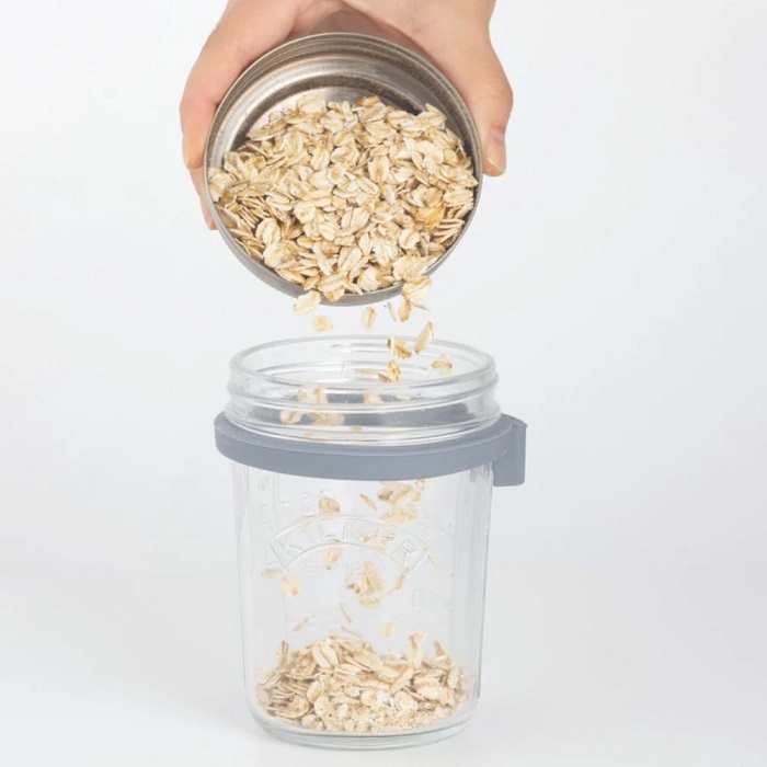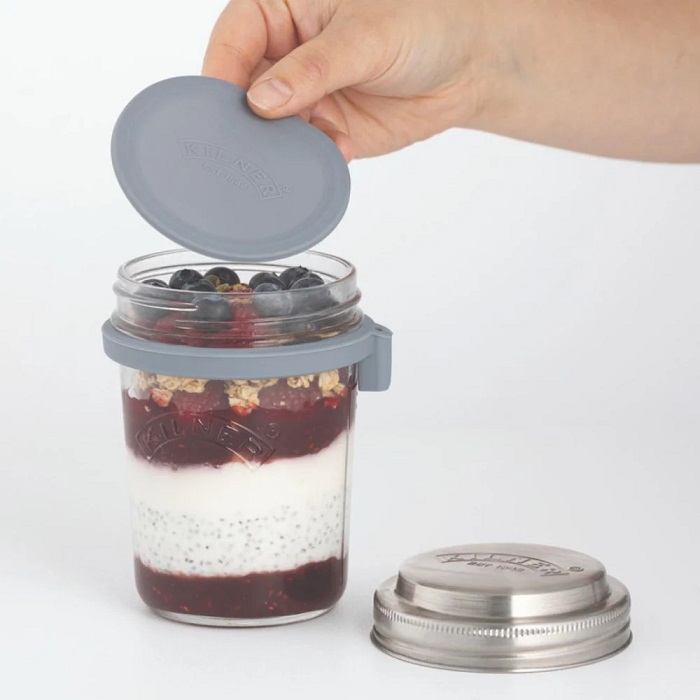 The Kilner Breakfast Jar Set is a unique way to store and consume breakfast snacks like overnight oats and cereals whether at home or on the go. Included in the set is a Kilner 0.35 litre wide mouth jar which comes with a unique stainless steel lid that doubles as a measuring cup for better portion control. This set also includes a stainless steel spoon, silicone spoon holder and airtight sealing disc. A great gift for a kitchen lover.