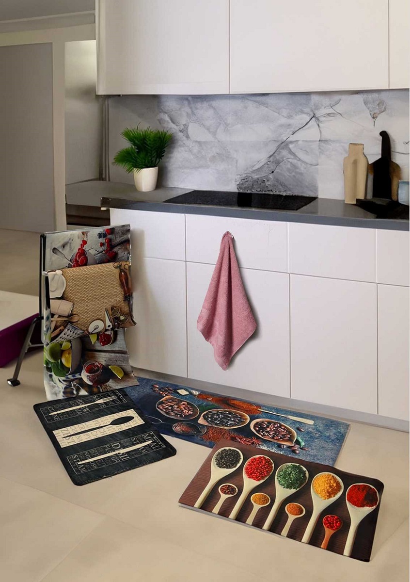 Discover comfort and functionality with our four-layer kitchen rug: polyester, sponge, foam, and non-slip base. Suitable for any kitchen making cooking even more enjoyable.