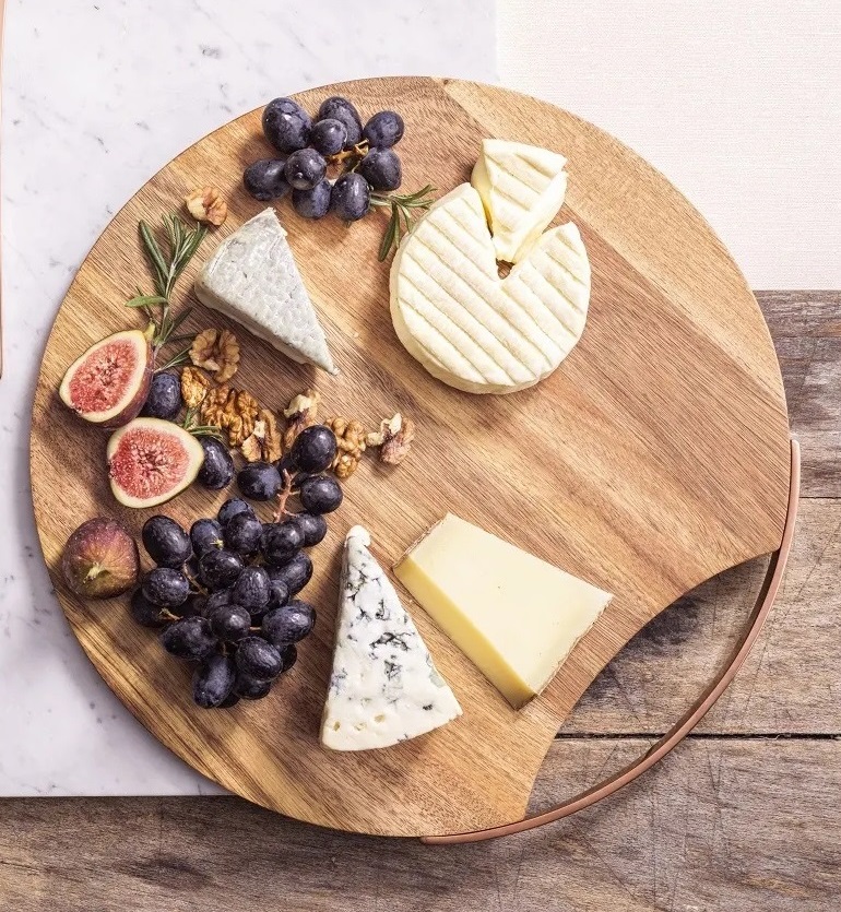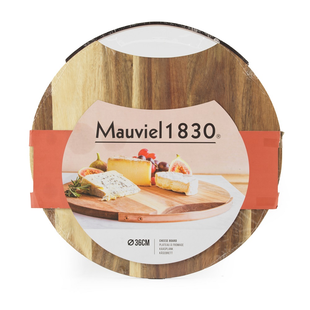 The Mauviel Cheeseboard is a beautifully crafted piece designed to elevate your cheese-serving experience. This cheeseboard combines functionality with aesthetic appeal. The Cheeseboard is made from high-quality acacia wood, known for its durability and natural beauty. Acacia wood is not only strong and resistant to wear and tear, but it also has a unique grain pattern that adds a touch of elegance to any table setting. Each board is finished with a food-safe mineral oil, which enhances the wood’s natural luster and provides a protective barrier against moisture and stains. One of the standout features of this cheeseboard is its copper-colored PVD coated stainless steel handle. The generous size allows you to create an impressive display that will delight your guests. It is recommended to hand wash it with a soft damp cloth and mild detergent. Avoid soaking the board in water or putting it in the dishwasher, as this can damage the wood and the PVD coating.