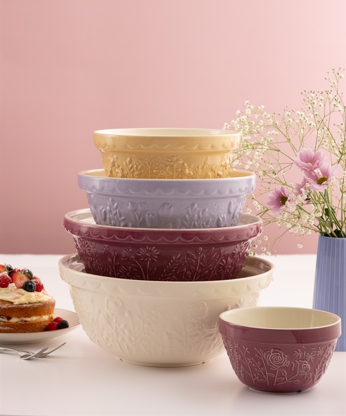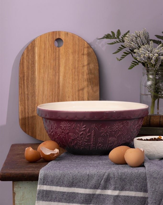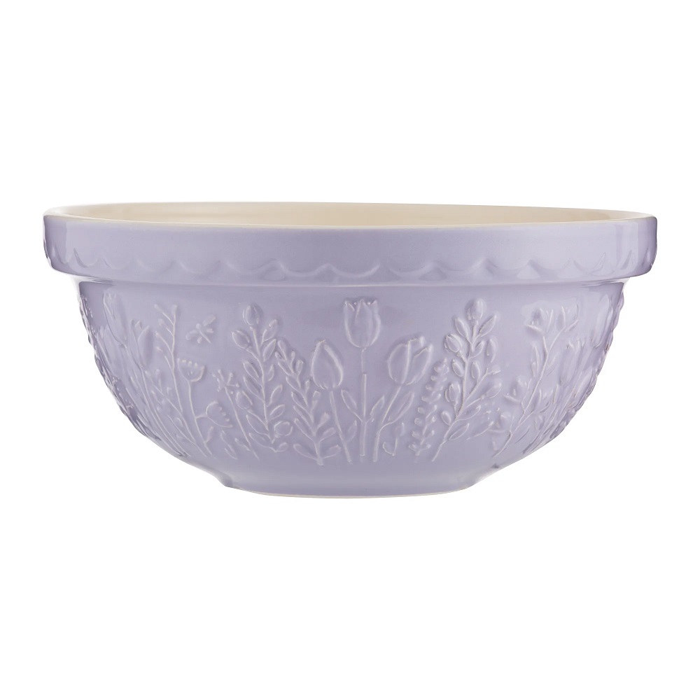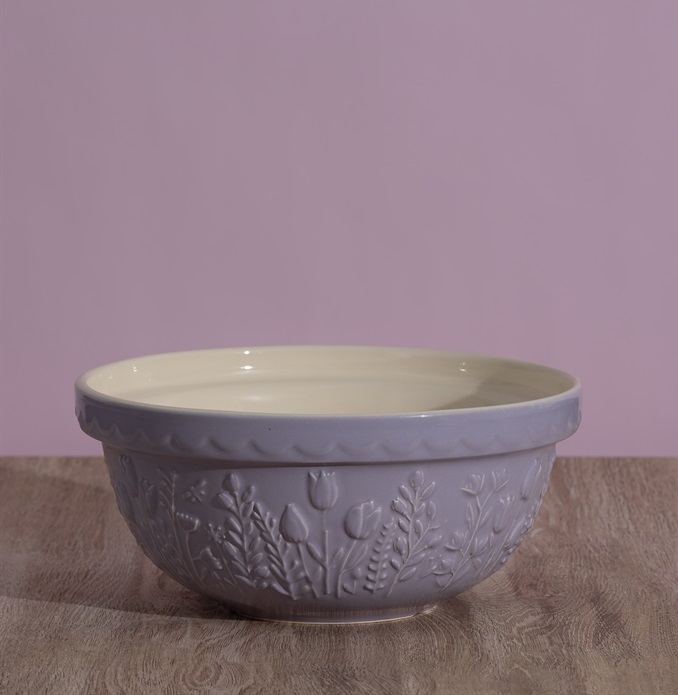 The Mason Cash In the Meadow collection is intricately embossed with delicate florals and foliage, with a beautiful colour palette. A perfect addition to any kitchen. Made from earthenware, the mixing bowl is light enough to hold in one arm while mixing, but sturdy enough when using on the counter top, making it the perfect bowl for home or professional bakers. The distinct patterned exterior and rim is designed to help bakers grip and tip the bowl, while the wide shallow shape allows for kneading within the bowl. It is the perfect size for dough, pastry, cake or cookie mixes. The bowl is dishwasher and freezer safe and feature a high-gloss glaze providing a chip resistant finish.