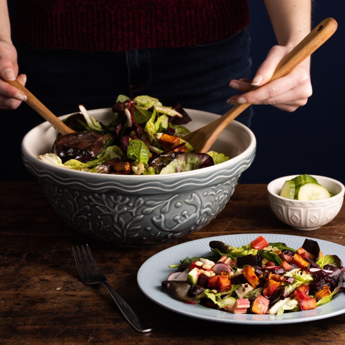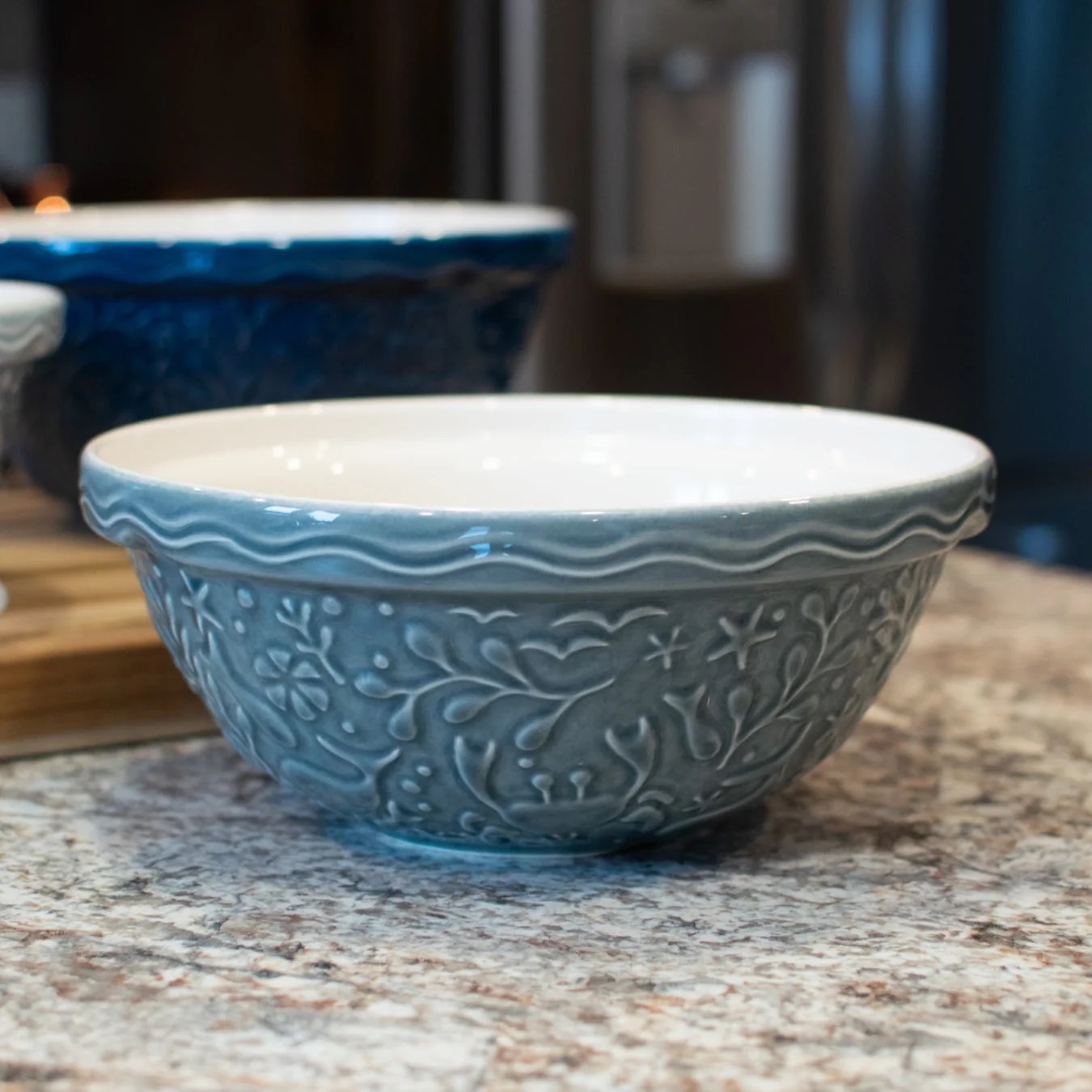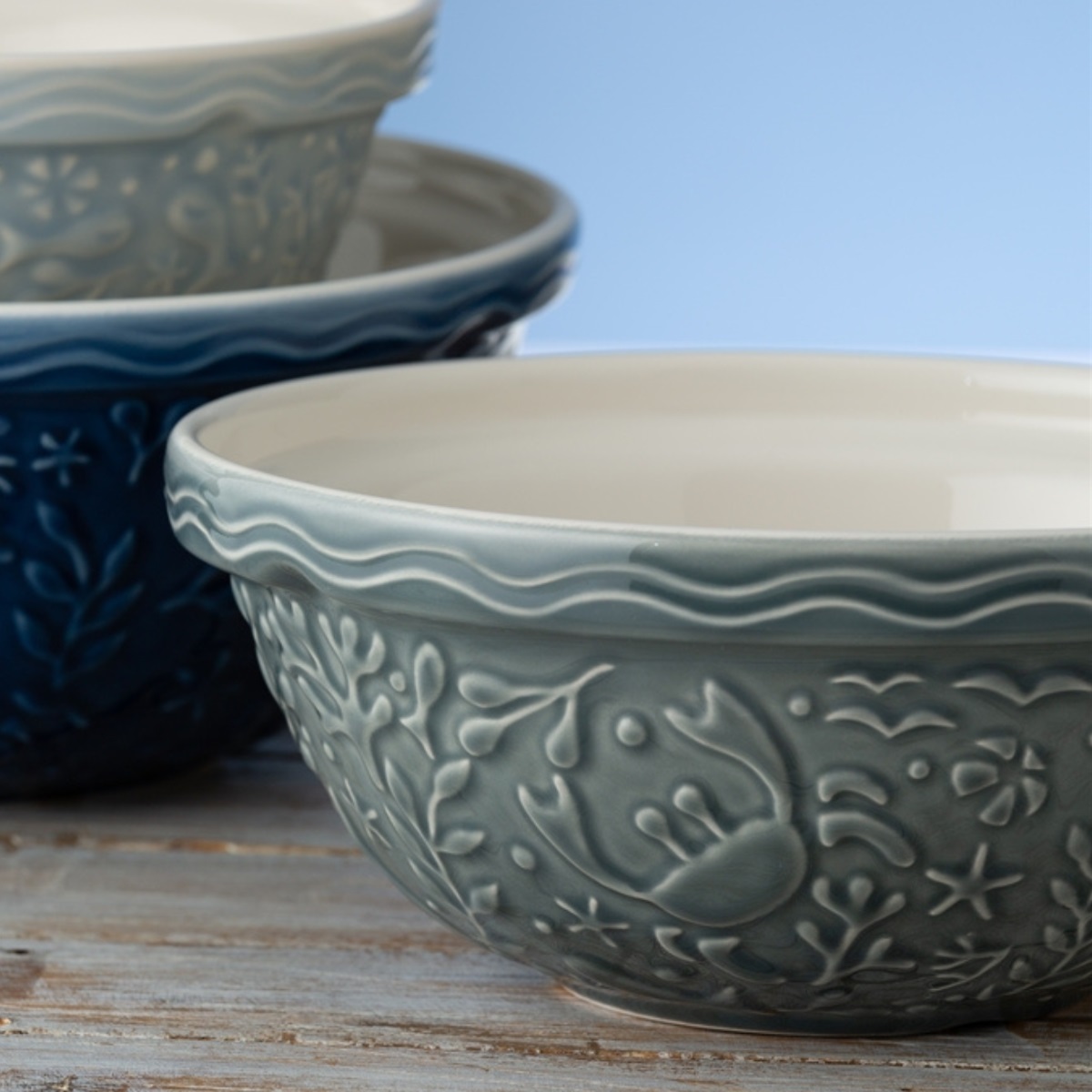 The Grey Nautical Mixing bowl is ideal for all your bread , pastry, cake and cookie mixes. The large bowl has embossed details of salt and freshwater features, the embossment also helps to grip the bowl when mixing.