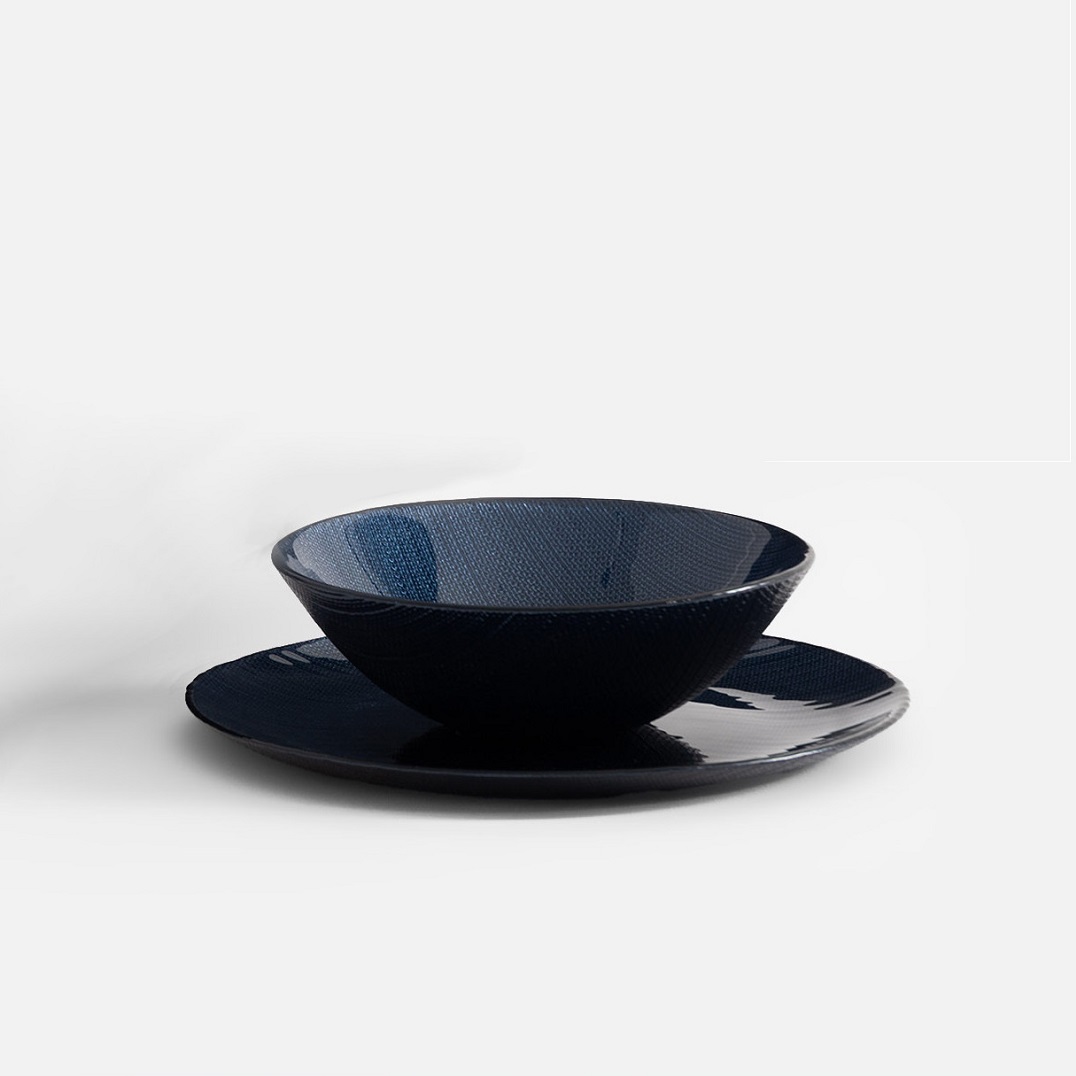 The elegant, navy blue bowl is a subtle combination of classic design and modern aesthetics. It is decorated with a delicate pattern that adds a unique charm and makes it a stylish element to any table. This bowl is a great choice for both everyday meals and special occasions.