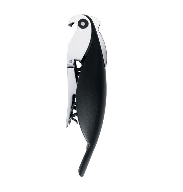 The parrot corkscrew satisfies even the most demanding sommeliers. The Sommelier corkscrew is made of cast aluminium. Since 2004, the year of “Anna G.” and “Alessandro M.”, we have all been waiting for a new element of surprise on the corkscrew front. “Parrot”, the practical, pocket-sized sommelier corkscrew, has been designed to meet these expectations.
