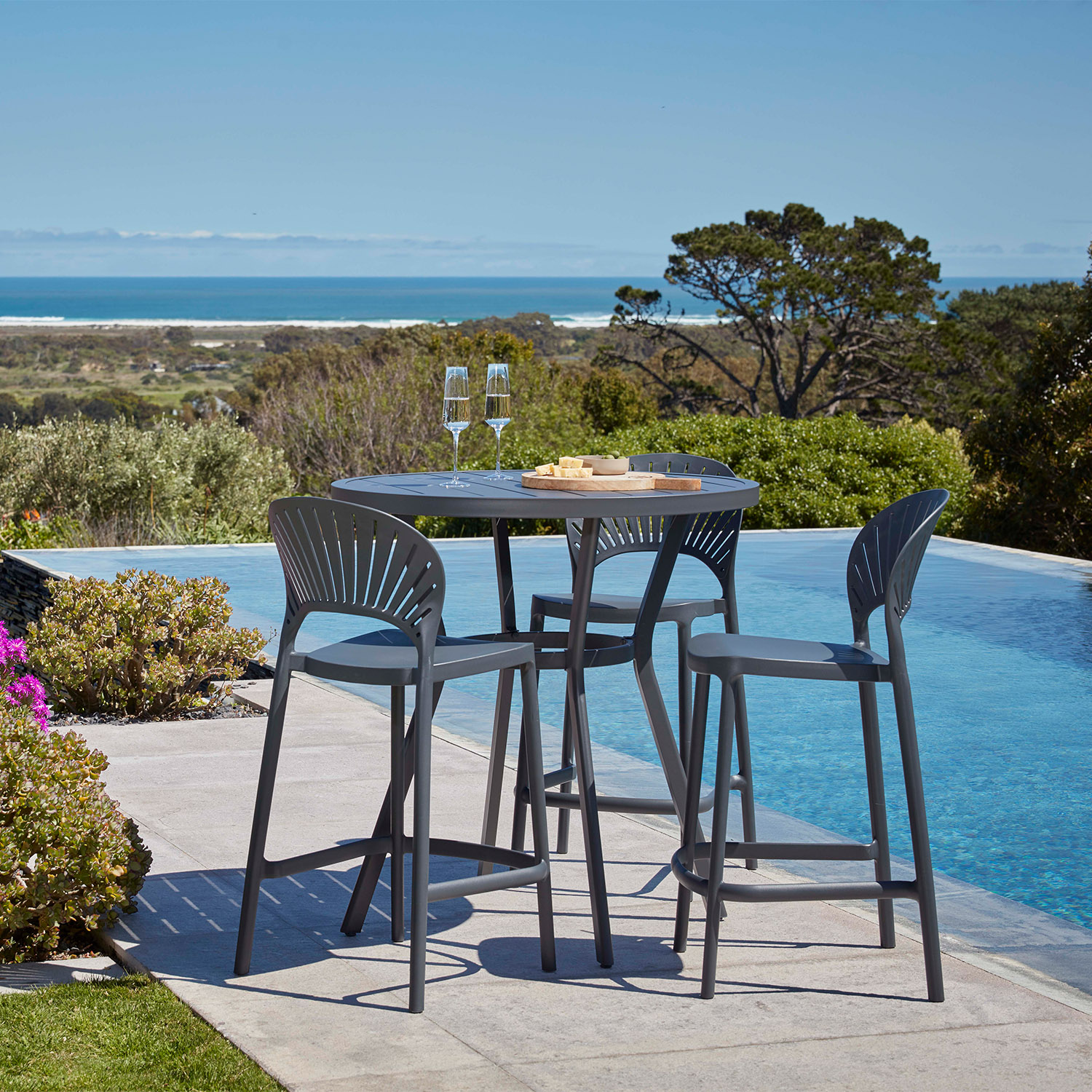 Passeri Round Bar Table 90cm & 4 Bar Chairs Grey
