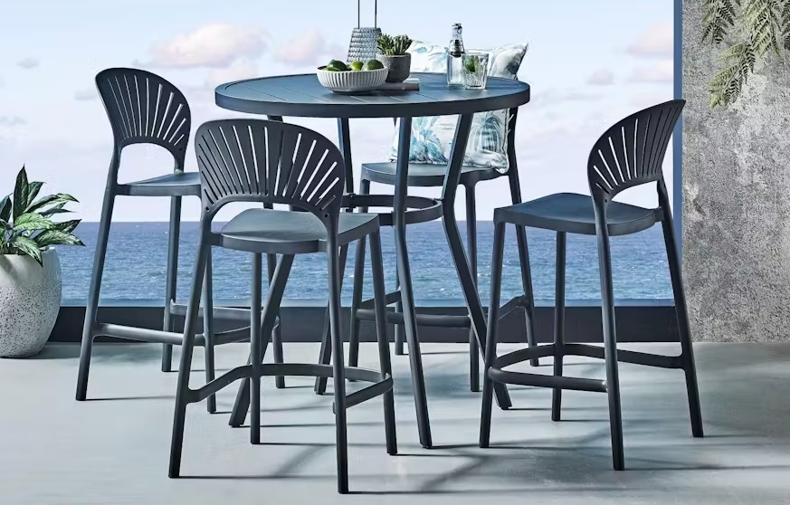 Strike up good conversation with friends at home with the simple charm of the Passeri 5-piece bar set. The bar table is made from lightweight, rustproof and low maintenance aluminium. It comes paired with the comfortable Passeri resin cut-out bar chairs that are durable and easy to clean. Offering a gorgeous fanned aesthetic with its open air chair back design, make it the perfect addition to any space in your home. The bar chairs are made from UV treated polypropylene for durability even when used outdoors as it is weather resistant with minimal maintenance.