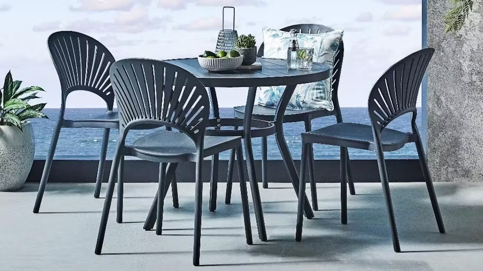 Settle in for a pleasant time with the robust charm of the Passeri 5-piece dining set. The table is made from lightweight, rustproof and low maintenance aluminium. It comes paired with the comfortable Passeri resin cut-out dining chairs that are durable and easy to clean. Offering a gorgeous fanned aesthetic with its open air chair back design, make it the perfect addition to any space in your home. The chairs are made from UV treated polypropylene for durability even when used outdoors as it is weather resistant with minimal maintenance.