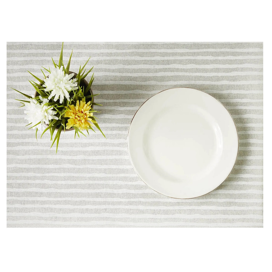 The tablecloth is made of cotton fabric treated for more resistance to liquids. Easy to clean as the tablecloth can be washed at 30°C in the washing machine. Its geometric pattern creates a very modern and elegant effect suitable for any interior. To preserve the stain-resistant properties of the fabric for a long time, we recommend washing the product in the washing machine at 30° when necessary and ironing it inside out with a low-temperature iron . Ironing the back at a low temperature reactivates the stain-resistant properties .