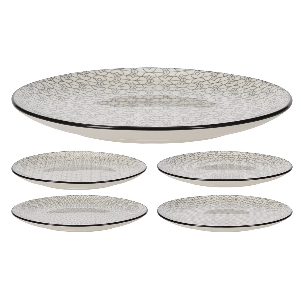 Porcelain plates with a minimalist design. The plates are very modern and will fit into any kitchen design. The plates come in 4 assorted designs.