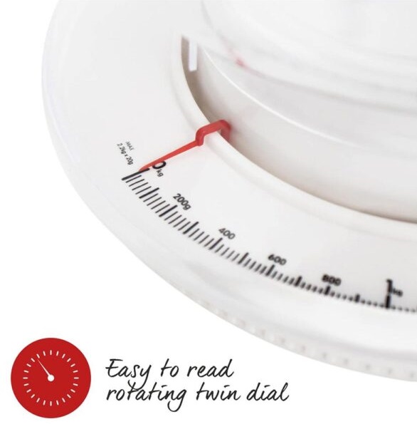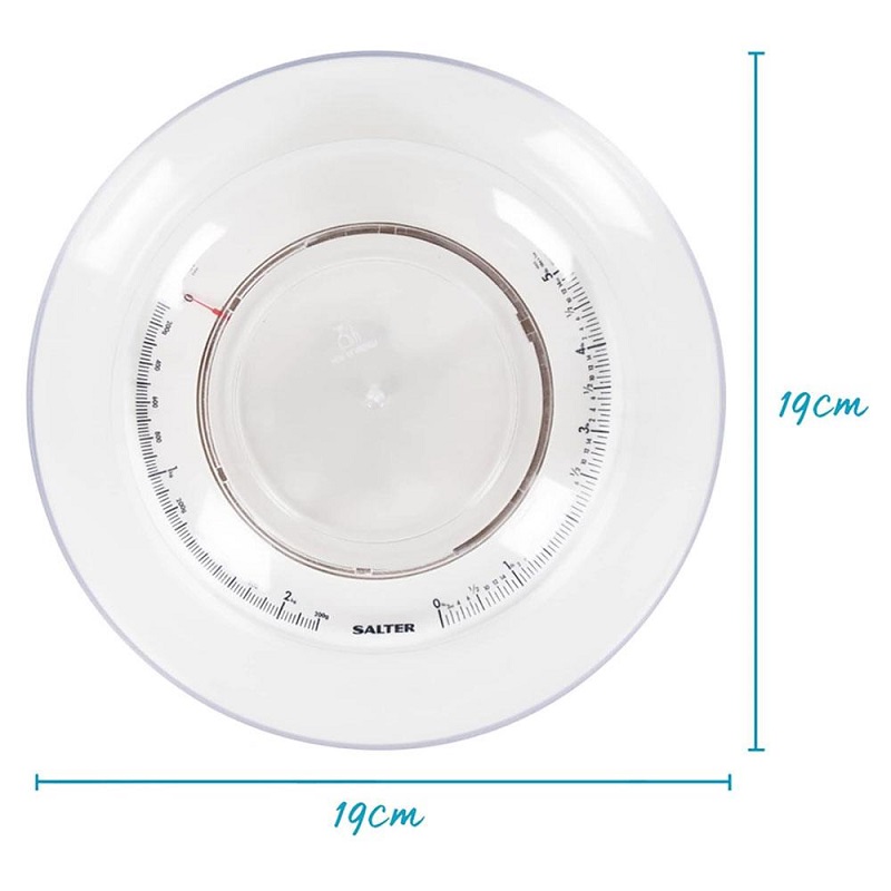 Ensure your measurements are always accurate and correct with this Salter mechanical kitchen scale, a must-have kitchen essential. The versatile measuring bowl included is dishwasher, freezer, and microwave safe but also covers the scales base for compact storage. Including an easy-to-read rotating dial, measurements can be read in imperial or metric measures to suit your preferences. The traditional design is classic and simple to use, with no batteries required, the kitchen scales will last you a lifetime of baking.