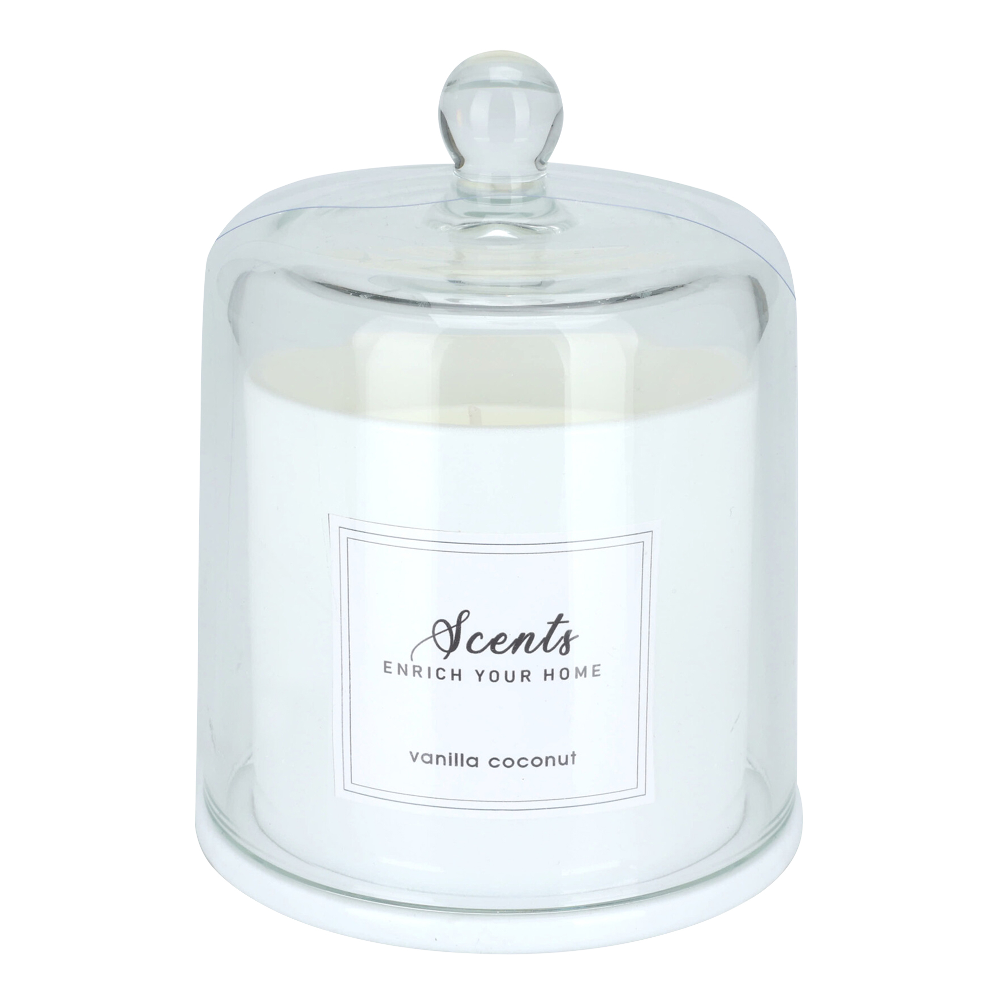 Enrich your home with a beautiful smell from a scented candle. Discover a subtle paradise for the senses with our scented candle with a pleasant aroma of black forest or vanilla and coconut, hidden under a glass dome. The dome creates a beautiful decoration for any interior. Perfect for placing on a table, chest of drawers or coffee table.