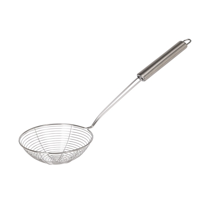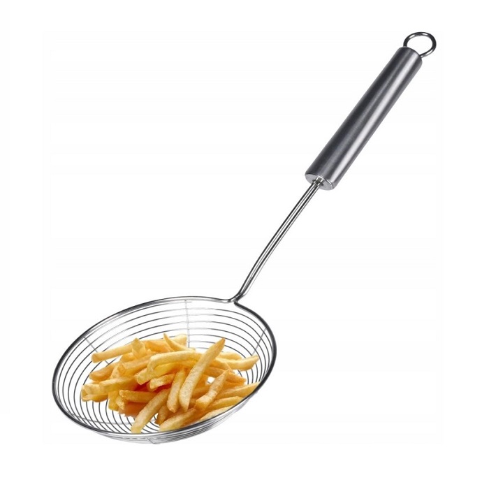 Thanks to this stainless steel skimmer you can easily grab food from your fryer without getting hurt. Featuring a hanging loop so you can easily hang the spoon. The serving spoon is dishwasher safe.