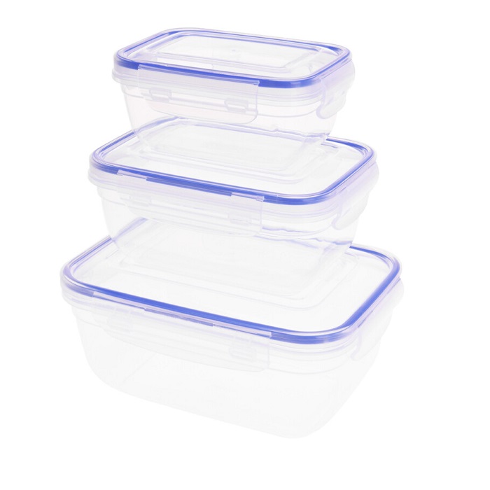 Good organization is essential in every kitchen. Thanks to their airtight closure, these storage boxes are perfect for storing leftovers or food for work. The food inside will stay fresh, won’t leak, or absorb other odours. The containers are made of top-quality plastic and feature a sturdy lid made of the same material. The material is food-safe.