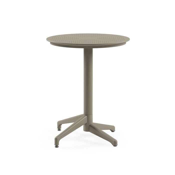 Inspired by the craters of the moon, the moon table features a perforated top. Its elegant, moon-like silhouette and minimalist form make it a versatile choice for indoor and outdoor spaces alike. The table is composed of multiple components such as a plastic top, crosspiece, legs, and aluminum leg tube. The table is also UV resistant thanks to the fiberglass reinforced polypropylene material. The metal surfaces are specially treated, glossy, and coated with solvent-free powder paint. Also features non-slip feet.