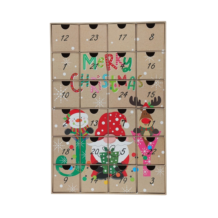 A delightful 24-drawer advent calendar for kids, which can be filled with sweets, notes or small gifts to make every December day special. Place tiny surprises behind each drawer for a joyful morning ritual. Made with sturdy materials and decorated in a jolly festive style, this calendar can be used again and again each year.