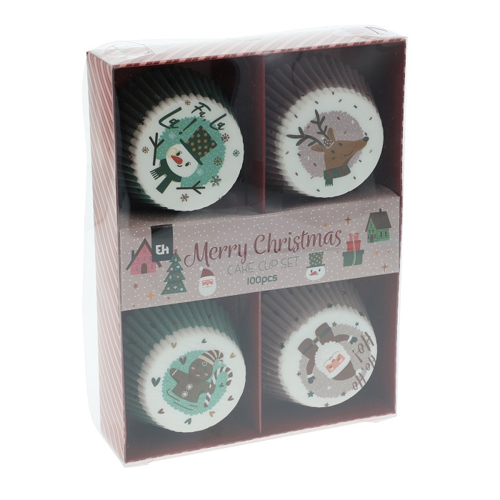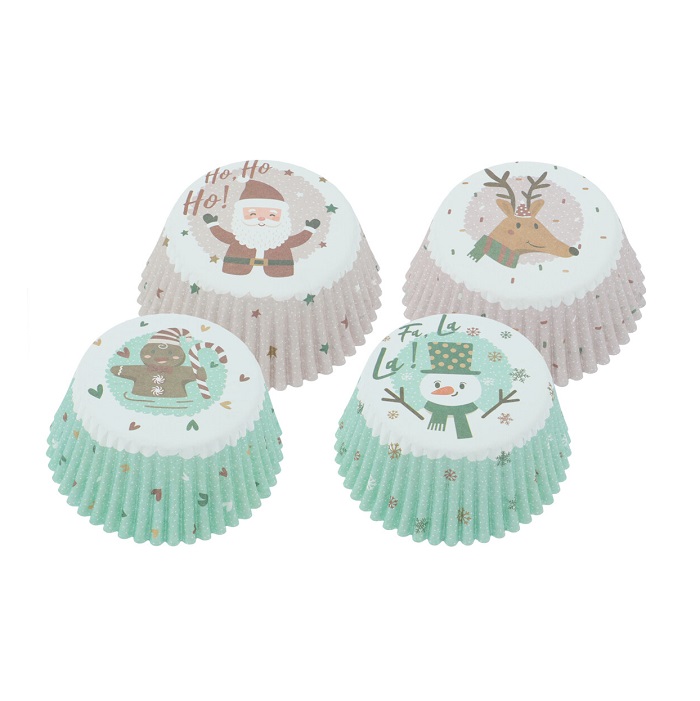 Christmas themed cupcake cups, ideal for preparing muffins, cupcakes and other sweet treats, but also for elegant serving of cookies, pralines or other small desserts. The pack contains 100 paper cups in four different Christmas designs that will brighten up any festive table. They are oven-safe and resistant to baking up to 180 °C. They are perfect for Christmas parties, corporate events, school gatherings or as a stylish decoration for a festive table.