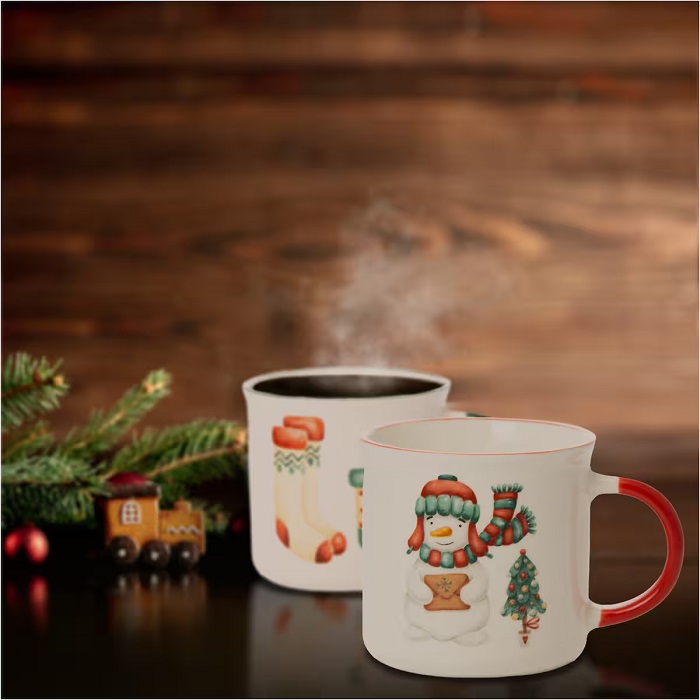Enjoy your favourite hot drinks in festive style with this gingerbread mug. The mug features a cheerful Christmas gingerbread design with snowflake and holly details, adding a playful touch to your seasonal tableware. Perfectly sized for tea, coffee, hot chocolate, or mulled drinks, the mug is both dishwasher and microwave safe, making them as practical as they are charming.