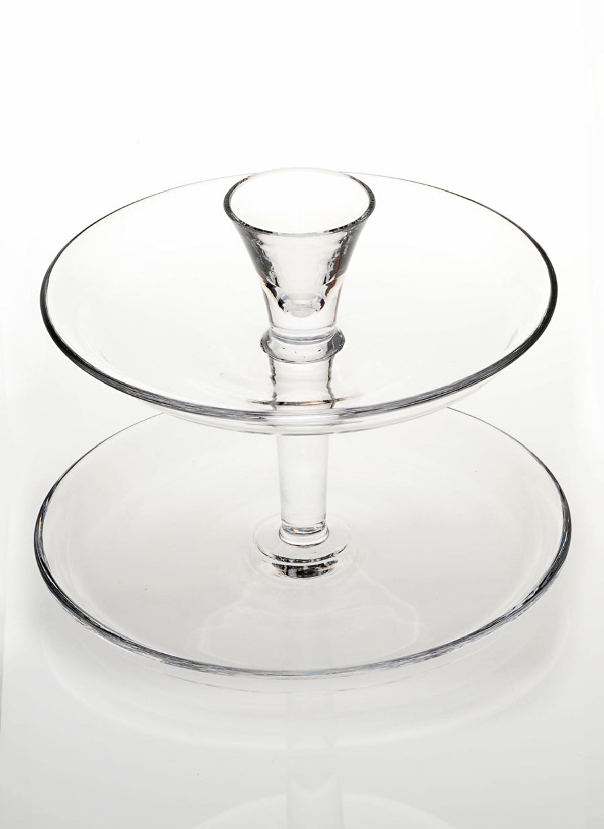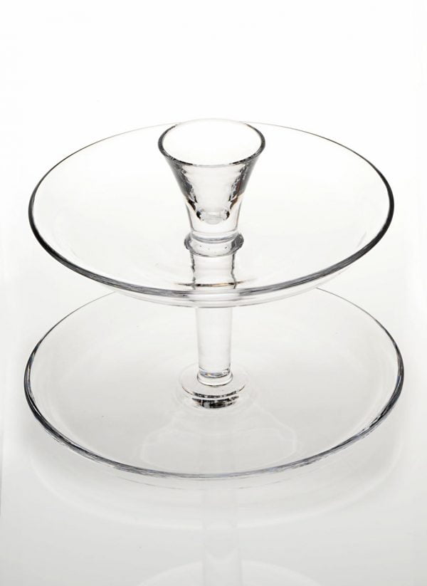A premium quality 2-tier cake stand. The cake stand is hand-made with fine materials. It can be used to showcase pastries or for hosting tea parties. This 2-tier glass cake stand would also make a great gift.