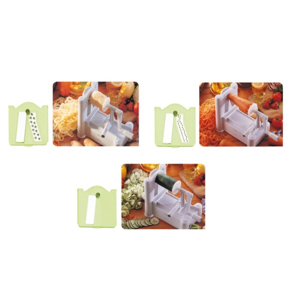 Cut fruit and vegetables into spaghetti and spirals. This slicer features three easily interchangeable inserts with sharp stainless steel knives. Non-slip feet for optimal support. Easy to clean just wash it under running water.