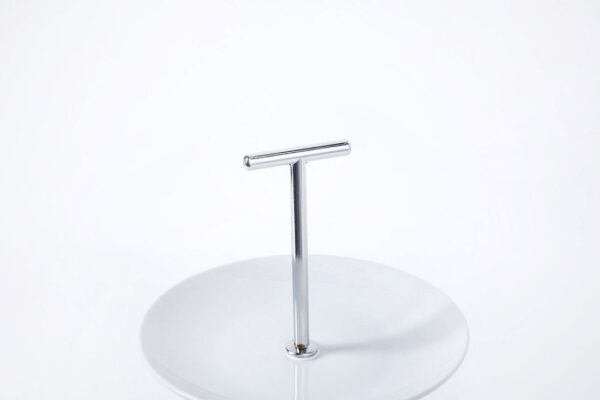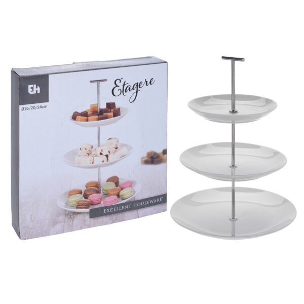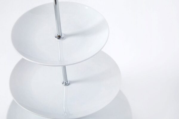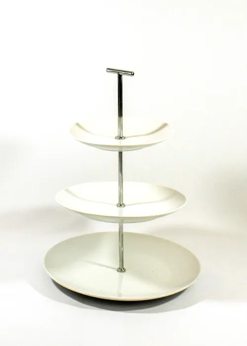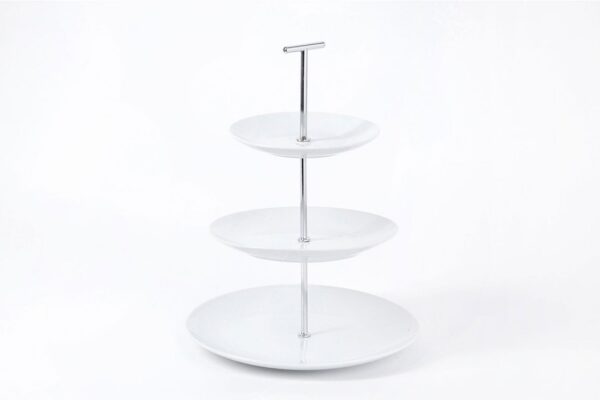 A three-tier dish made of high-quality porcelain perfect for serving a sweet or savoury dishes such as sandwiches, pies, cakes or sweets. It is also convenient to use the dish as a centrepiece for fruits and berries. The 3 tier stand is easy to assemble and disassemble and transfer from place to place. Dishes removed from the rack can be washed in the dishwasher.