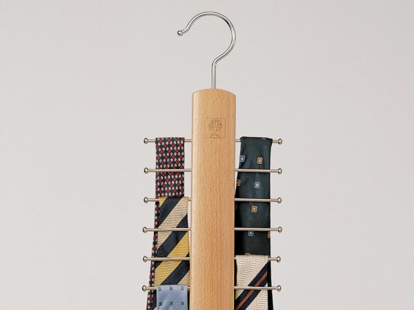 The Amelie wooden tie rack by Foppapedretti has a hook to hang it in the wardrobe and a series of chrome hooks for hanging lots of ties to it. Made of beechwood, it comes in an elegant gift box.