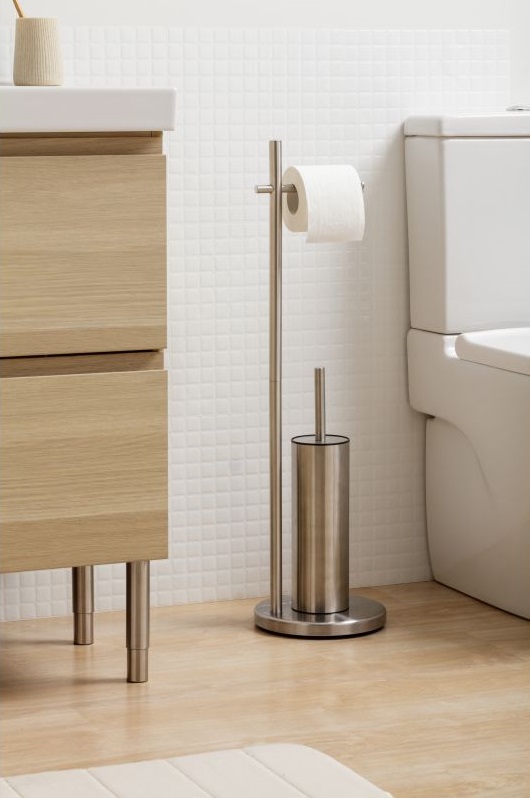 Baobab 3-piece bathroom set consisting of tumbler, soap dispenser and A6 organizer basket. Simple, minimalist and modern design, with rounded shapes and scratched vertical engraving. Colors in neutral tones that can be combined with all the styles of your home. Product manufactured in Spain by Tatay in high quality BPA-free PP. Perfectly combinable with any style of bathroom and home!