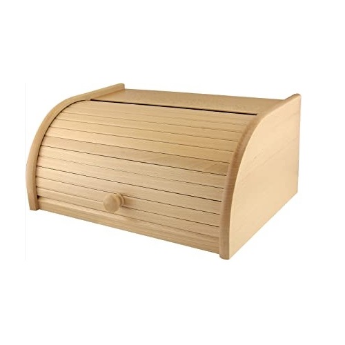 Convex bread bin in beech wood with door, ideal container for storing your bread. Available in walnut and natural wood.