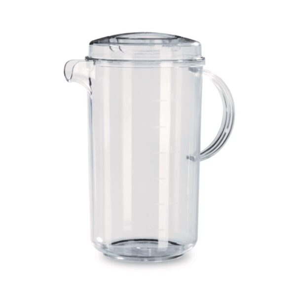 Versatile, elegant and transparent jug which can be used both at a catering establishment or at home. The jug features a drip-saving spout and lid. It is freezer, microwave and dishwasher safe.