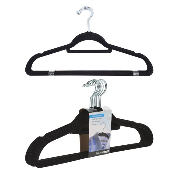 Set of ten universal clothes hangers made of the highest quality stainless steel and durable material. Additionally, covered with soft and pleasant to the touch black felt that prevents delicate clothing from slipping, creases or abrasions. The hangers are durable and elegant at the same time. The hangers are suitable for various types of clothes, such as blouses, jackets, skirts, trousers and dresses. They have additional space for hanging a scarf, scarf or tie.