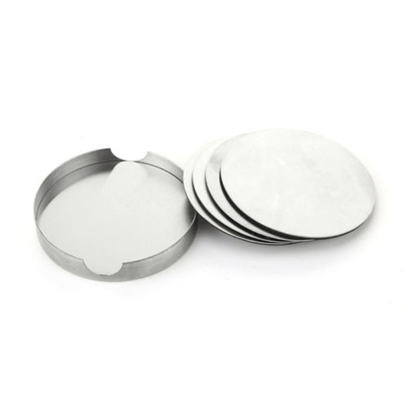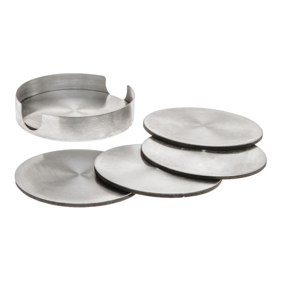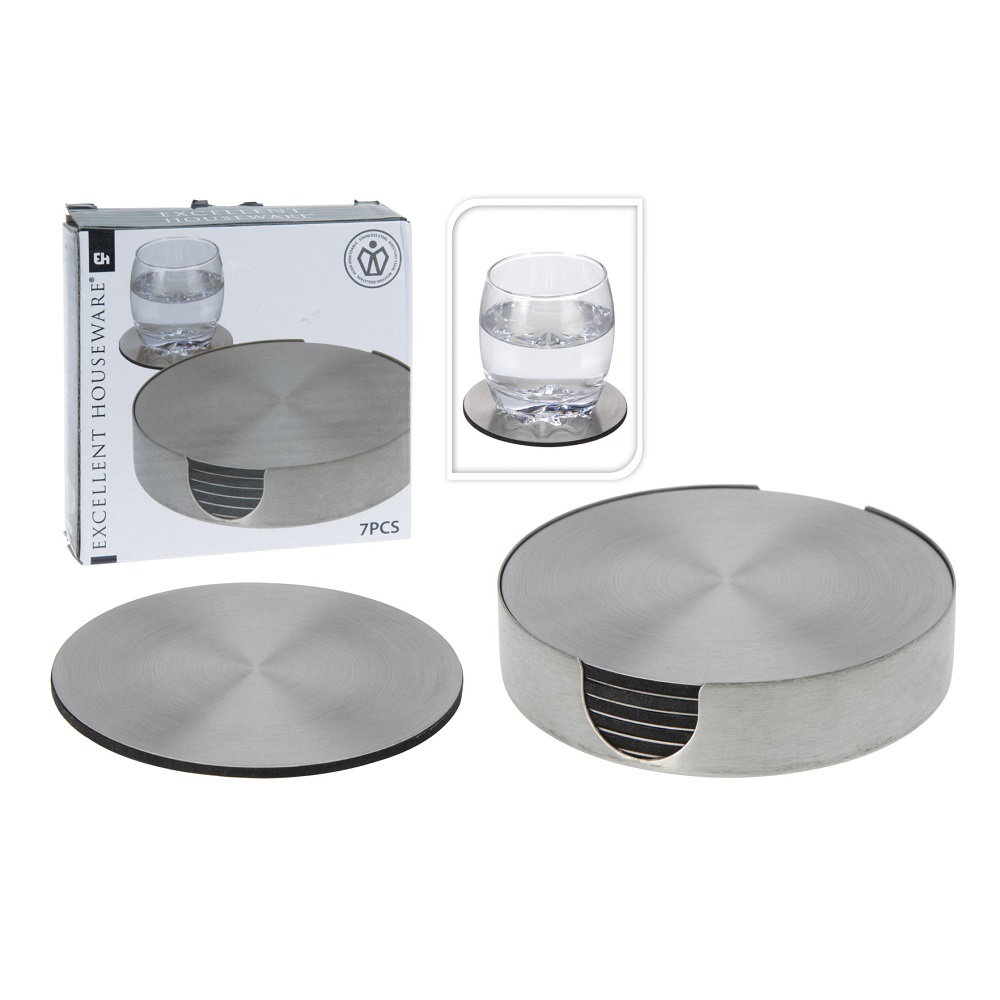 A set of 6 stainless steel coasters complete with holder. It is ideal to protect your table from glassware and stains. Apart from being useful for your home it is also suitable for pubs and bars.