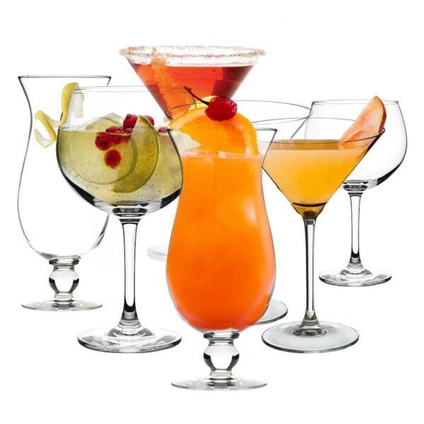 A classic drinkware collection for your favourite cocktails! Whether you want to serve gin & tonic, pina colada, martini’s or all 3, these stemmed cocktails glasses set is the one. This stemware range will be the ideal during parties, family meals, BBQ’s, restaurants, bars & more. Made from durable glass in the classic tall hurricane, v-shaped and balloon drinking structures, you’ll be ready to serve some amazing beverages! They are Dishwasher Safe.