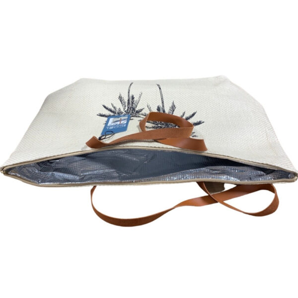 A practical and comfortable handbag suitable for transporting food and drinks wherever you go. The inside of the bag is fully lined with a 3mm thermo-insulating material, thanks to which your contents do not heat up on hot days and stay fresh for longer. Made of durable fabric, and brown PU leather handles. Equipped with a practical carrying handle so you can comfortably hold the bag in your hand.
